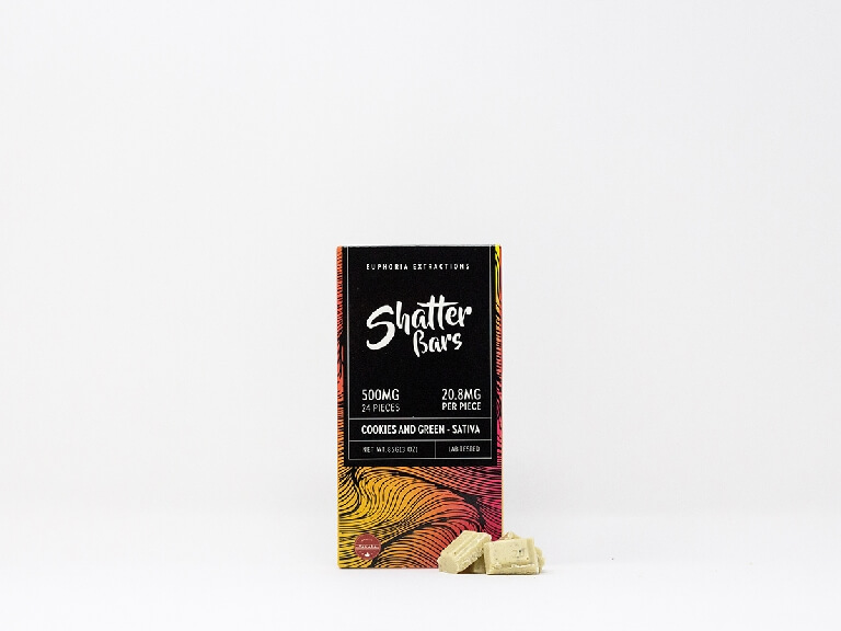 Euphoria Extractions Cookies & Green Shatter bars are the perfect solution for your edible needs. With 24 squares, these bars are easy to manage, and contain a potent Lab Tested Full Spectrum Extract sourced from the finest cannabis available. Euphoria Shatterbars are guaranteed to provide total satisfaction.